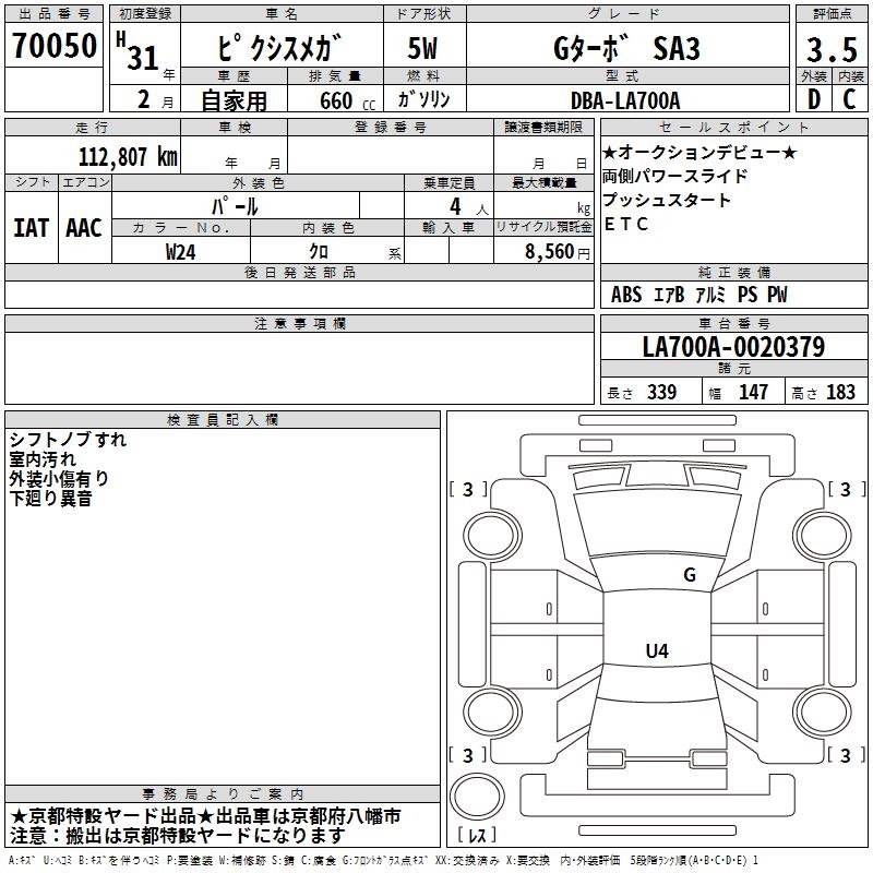 TOYOTA PIXIS MEGA G TURBO SA3 - лот 70050