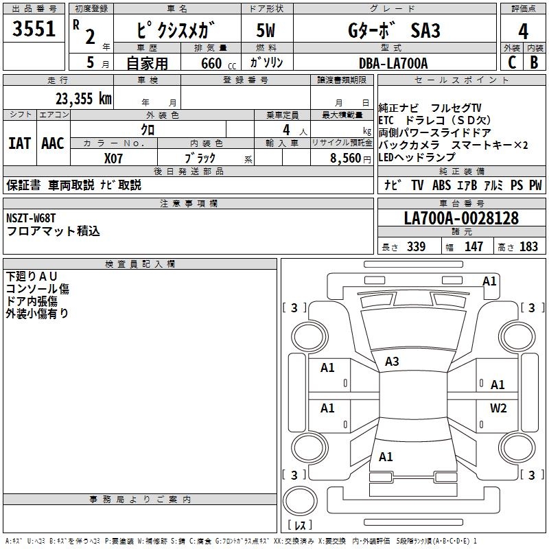 TOYOTA PIXIS MEGA G TURBO SA3 - лот 3551