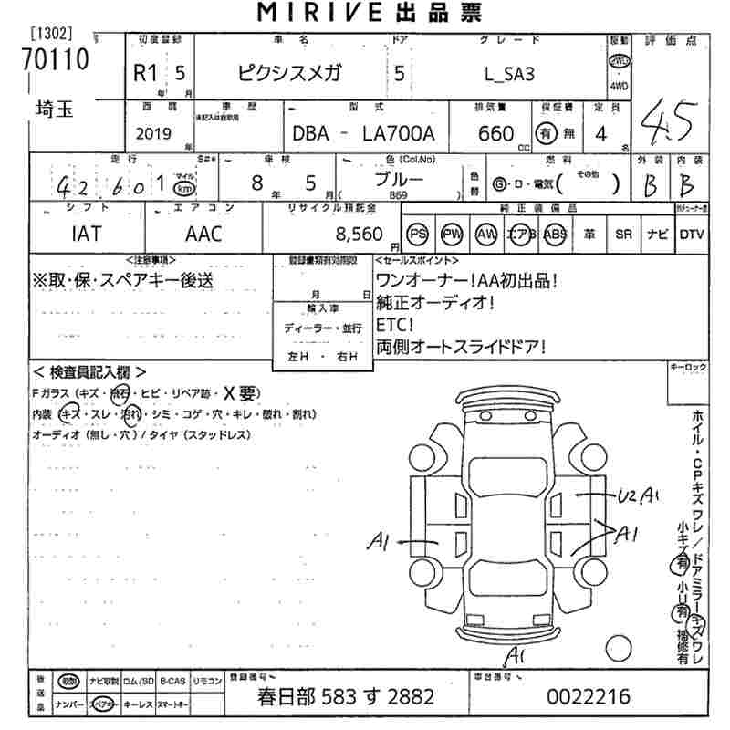 TOYOTA PIXIS MEGA L_SA3 - лот 70110
