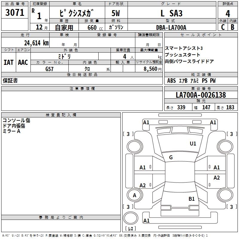 TOYOTA PIXIS MEGA L SA3 - лот 3071