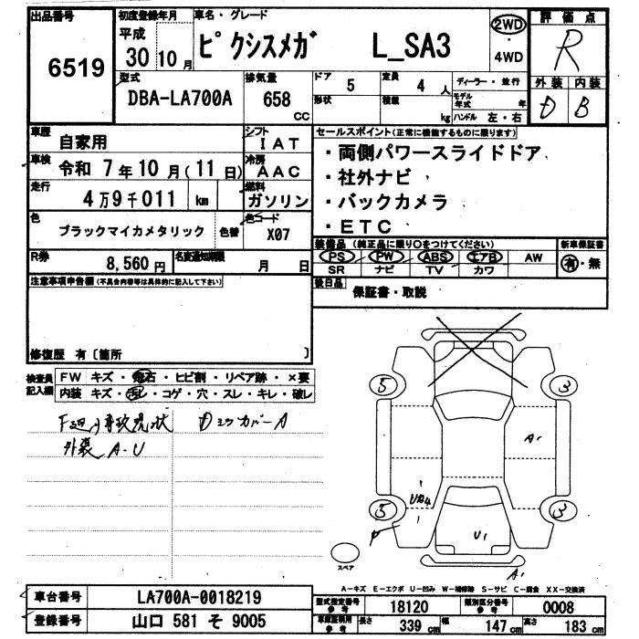 TOYOTA PIXIS MEGA L SAIII - лот 6519