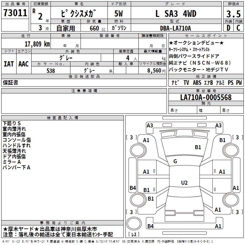 TOYOTA PIXIS MEGA L SA3 4WD - лот 73011