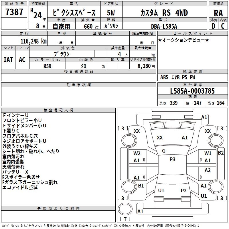 TOYOTA PIXIS SPACE CUSTOM RS 4WD - лот 7387