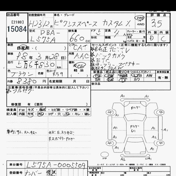 TOYOTA PIXIS SPACE CUSTOM X - лот 15084