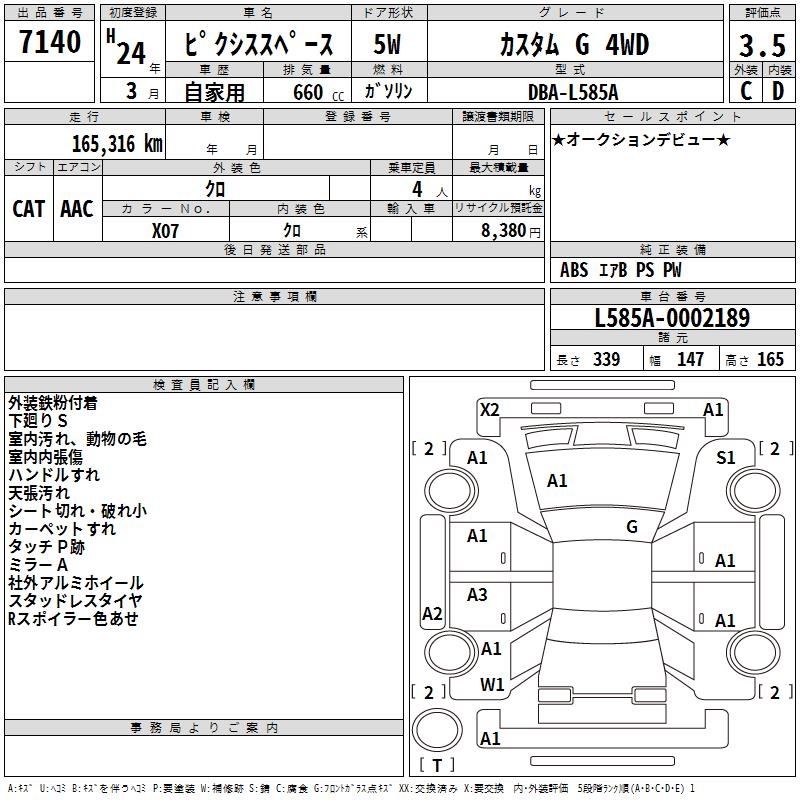 TOYOTA PIXIS SPACE CUSTOM G 4WD - лот 7140