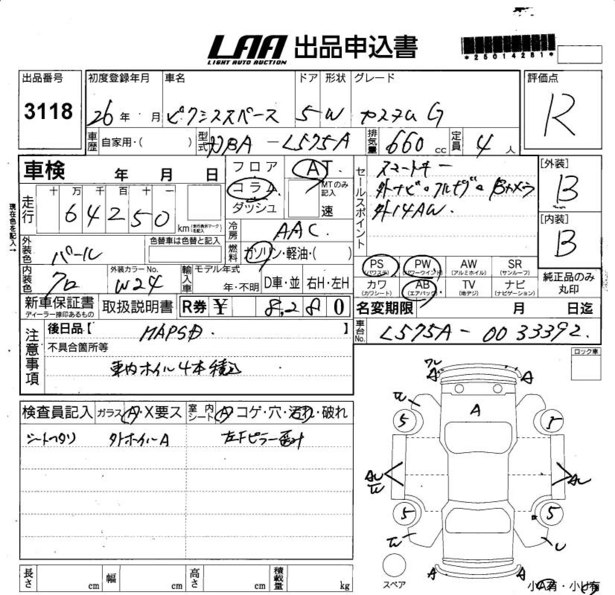 TOYOTA PIXIS SPACE CUSTOM G - лот 3118