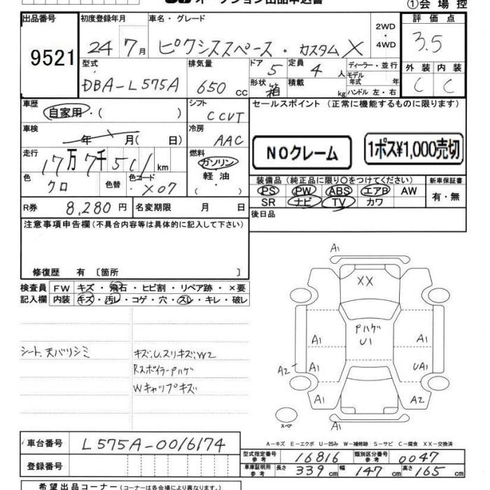 TOYOTA PIXIS SPACE CUSTOM X - лот 9521