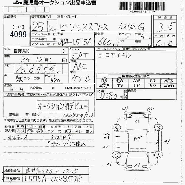 TOYOTA PIXIS SPACE CUSTOM G - лот 4099