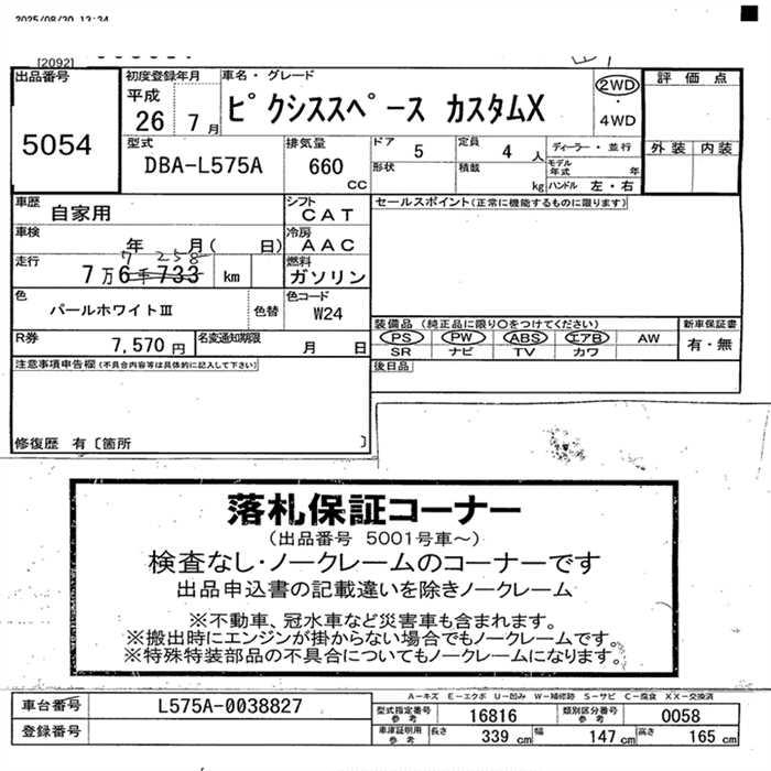 TOYOTA PIXIS SPACE CUSTOM X - лот 5054