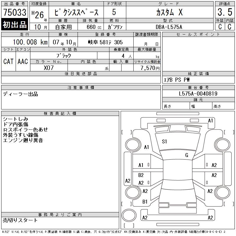 TOYOTA PIXIS SPACE CUSTOM X - лот 75033