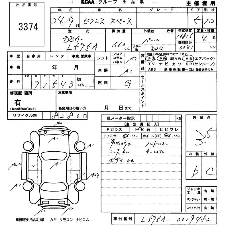 TOYOTA PIXIS SPACE - лот 3374
