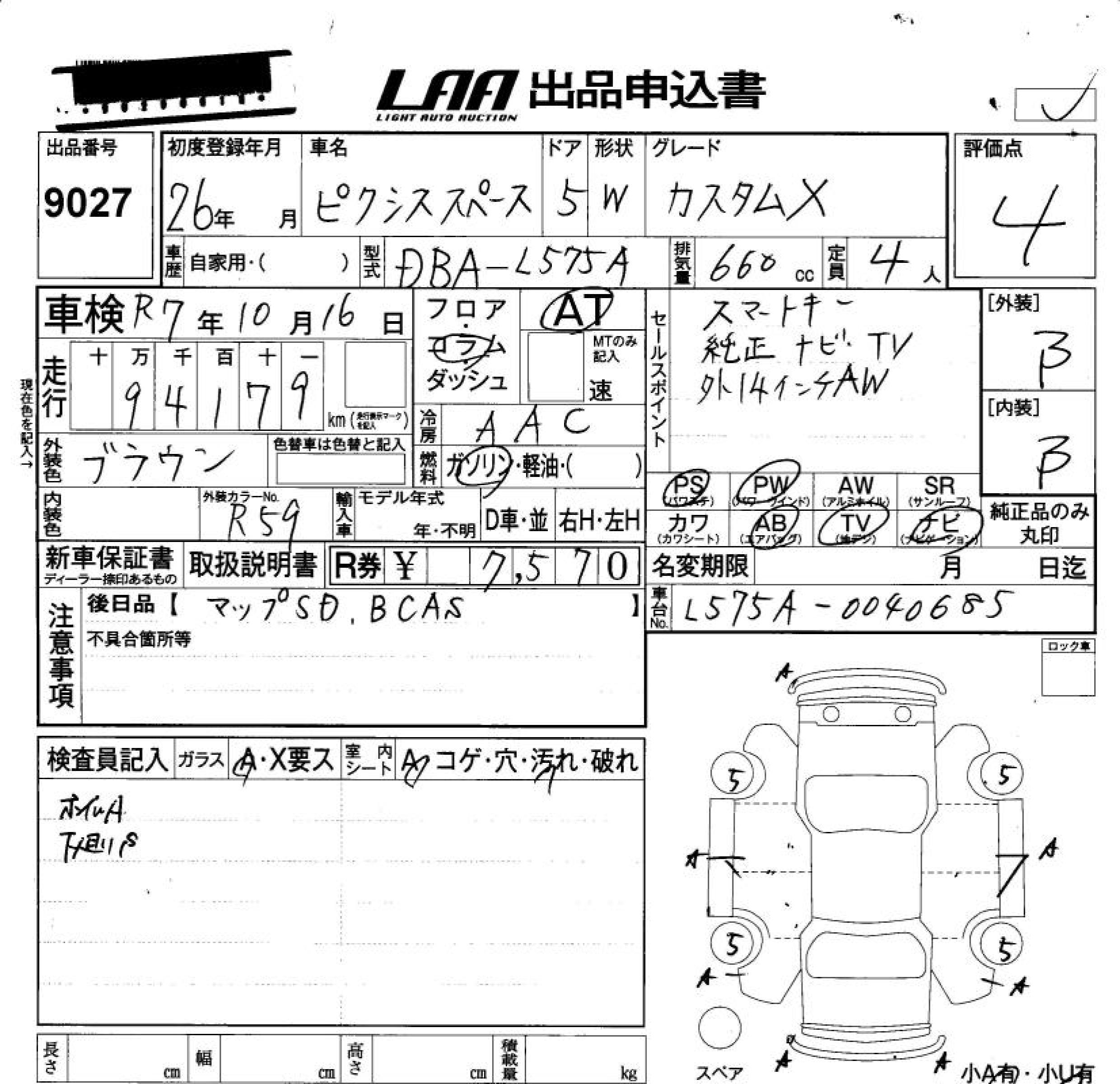 TOYOTA PIXIS SPACE - лот 9027