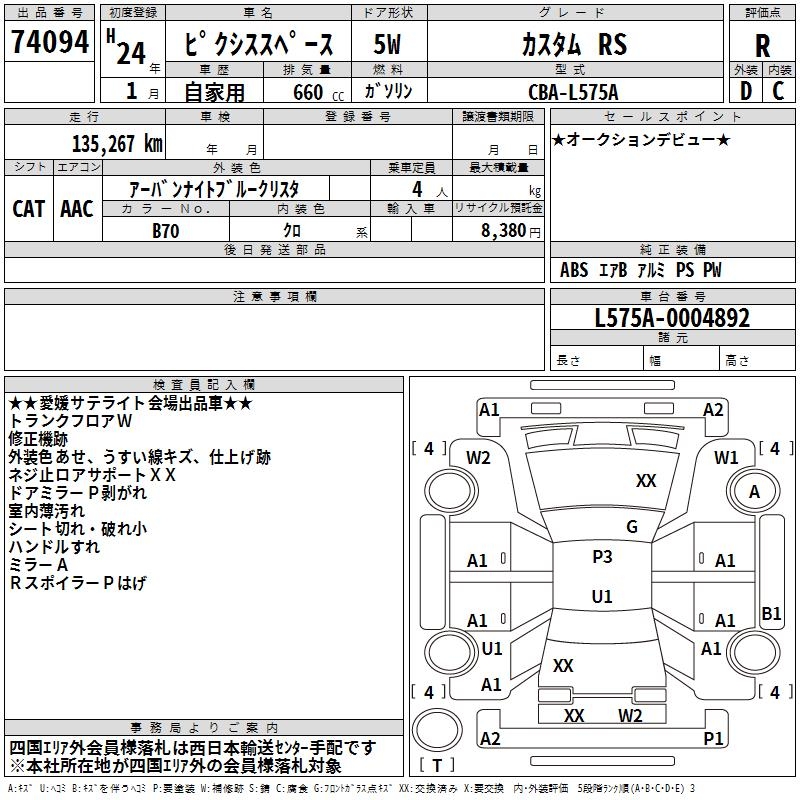 TOYOTA PIXIS SPACE - лот 74094