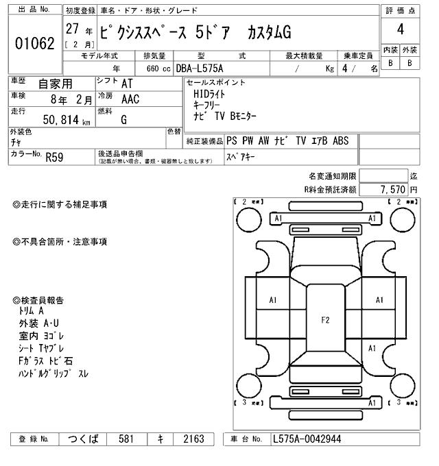TOYOTA PIXIS SPACE CUSTOM G - лот 1062