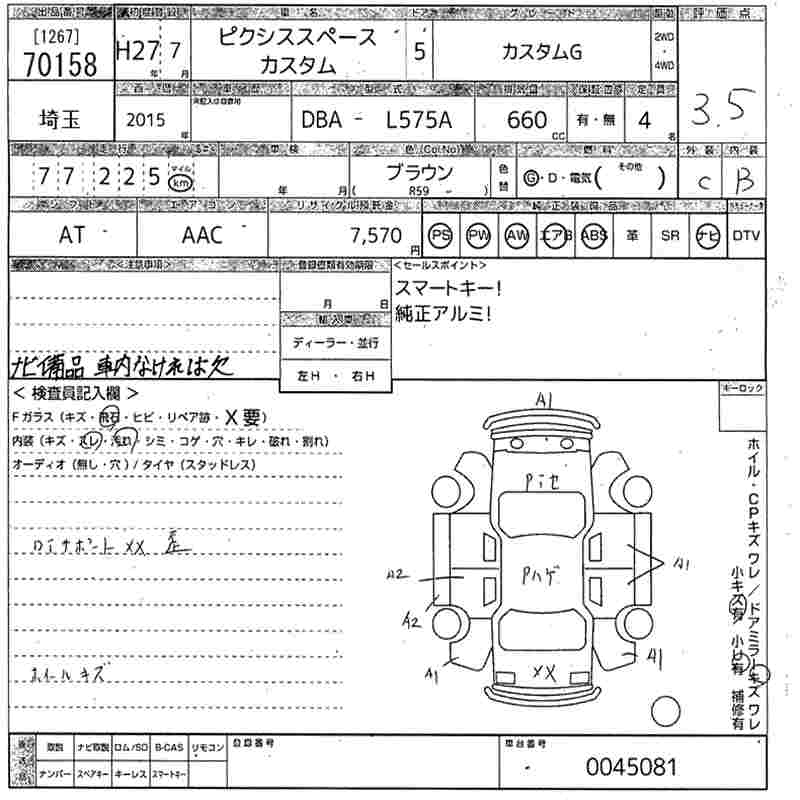 TOYOTA PIXIS SPACE CUSTOM G - лот 70158