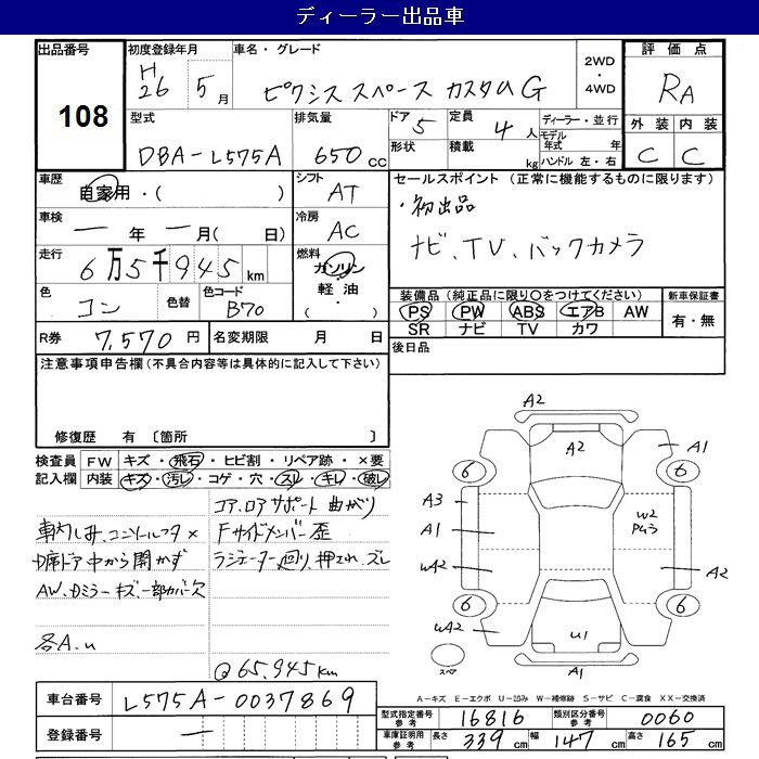 TOYOTA PIXIS SPACE CUSTOM G - лот 108