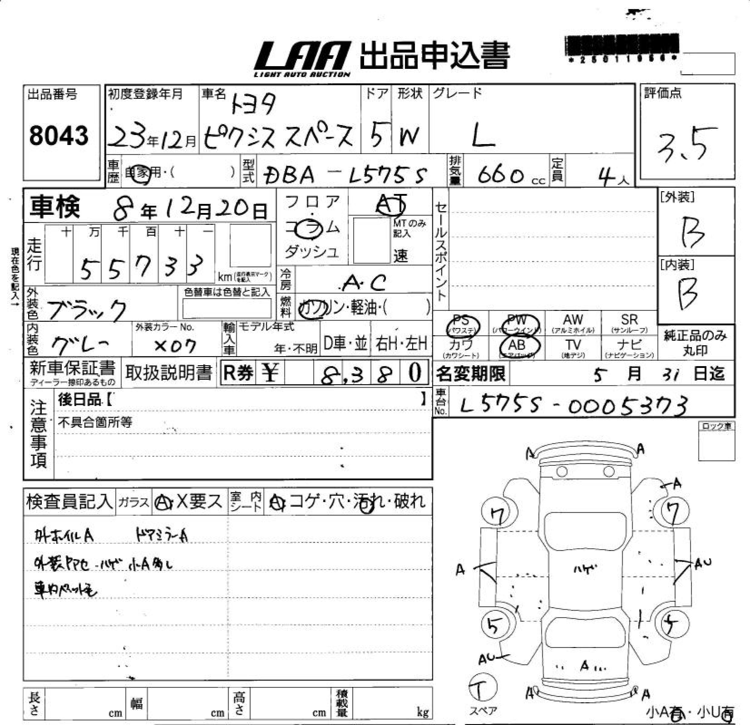 TOYOTA PIXIS SPACE L - лот 8043