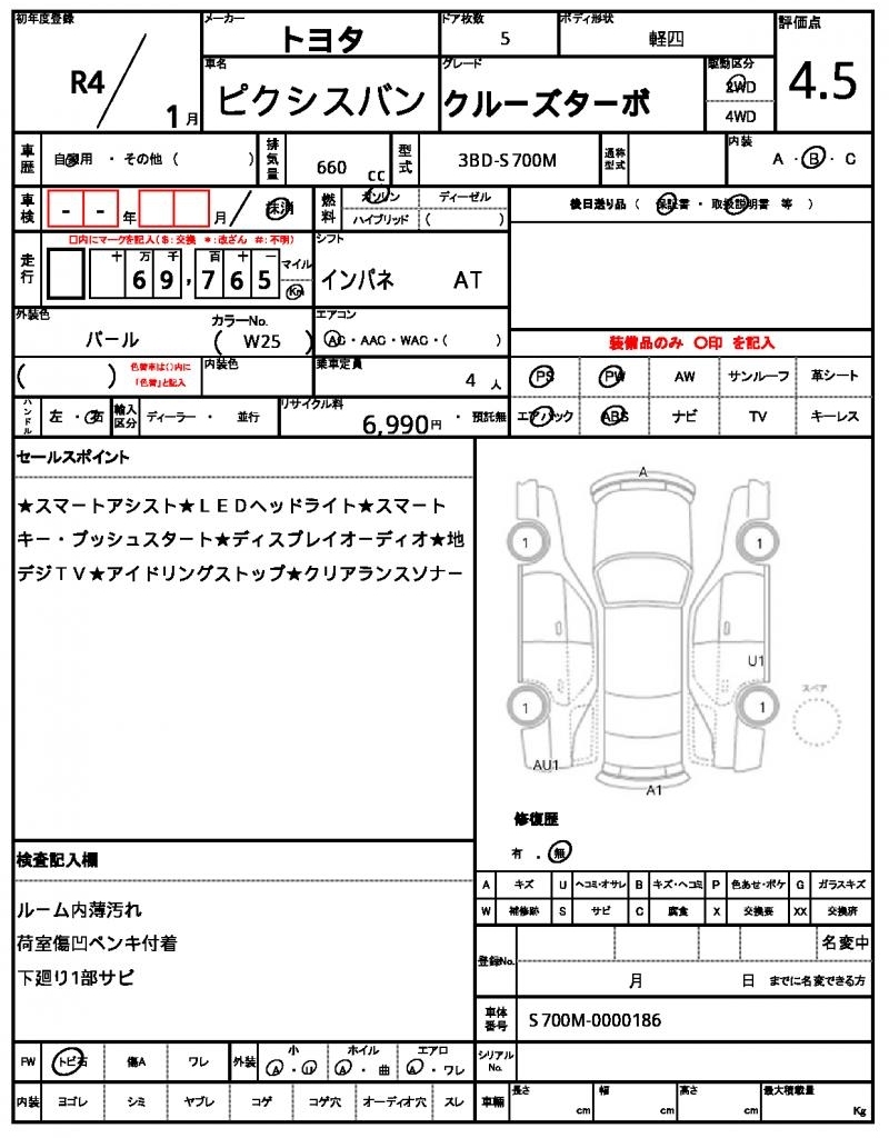 TOYOTA PIXIS VAN - лот 55673