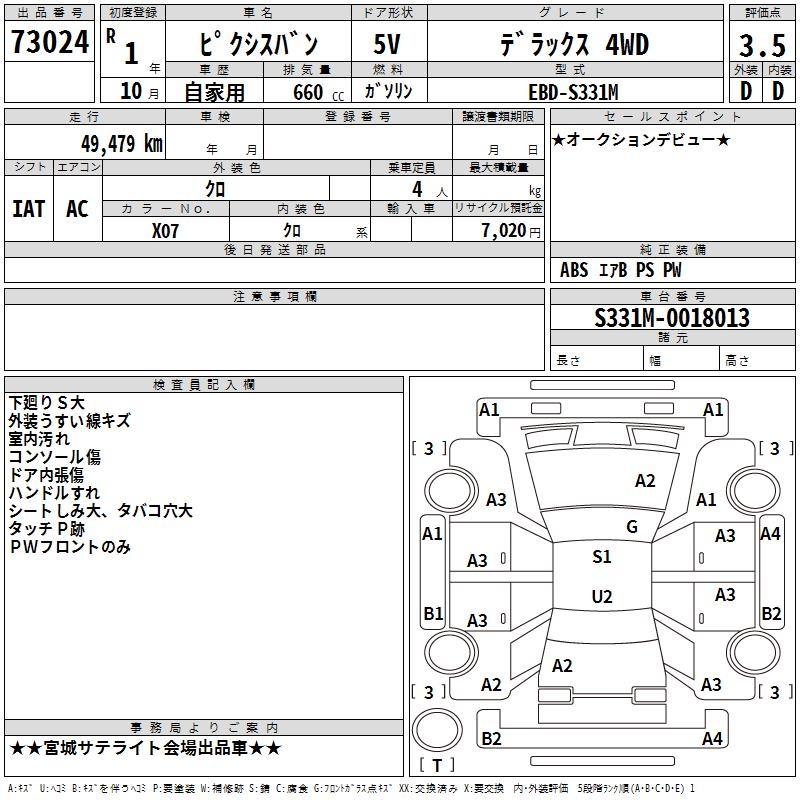 TOYOTA PIXIS VAN - лот 73024