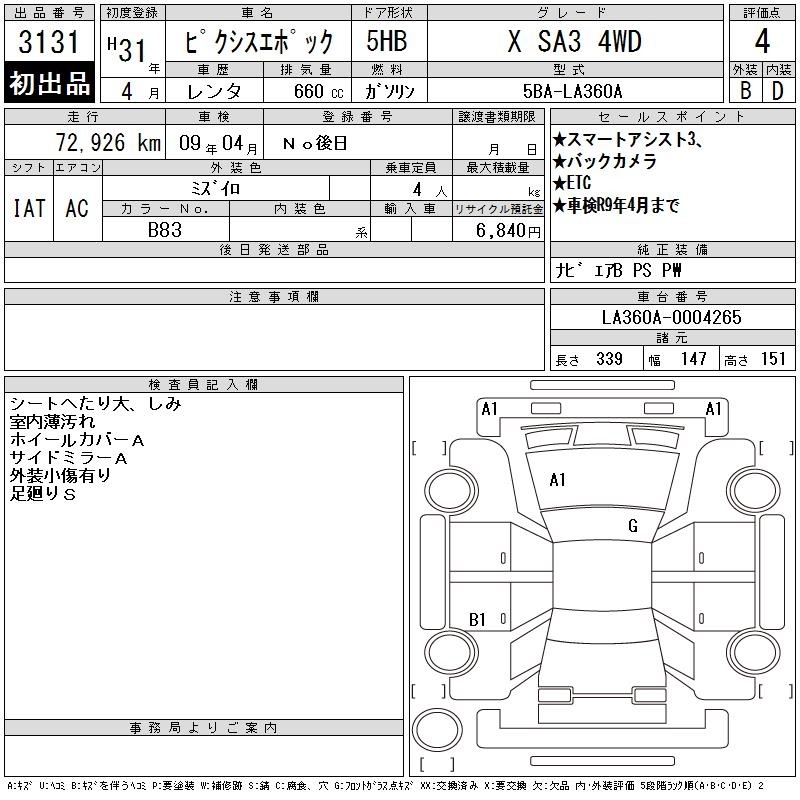 TOYOTA PIXIS EPOCH - лот 3131