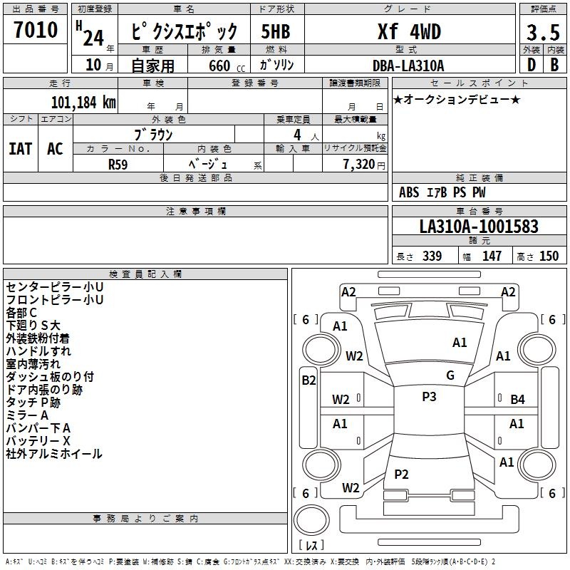 TOYOTA PIXIS EPOCH - лот 7010