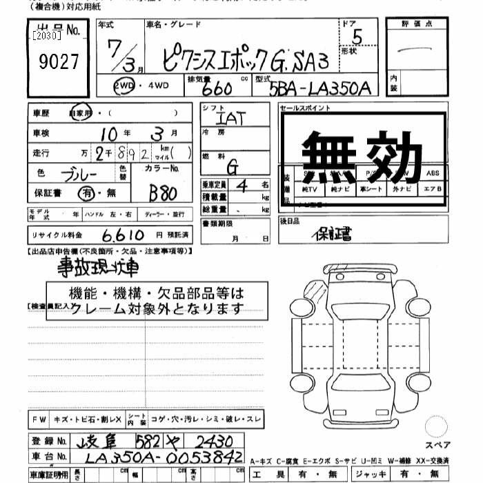 TOYOTA PIXIS EPOCH - лот 9027