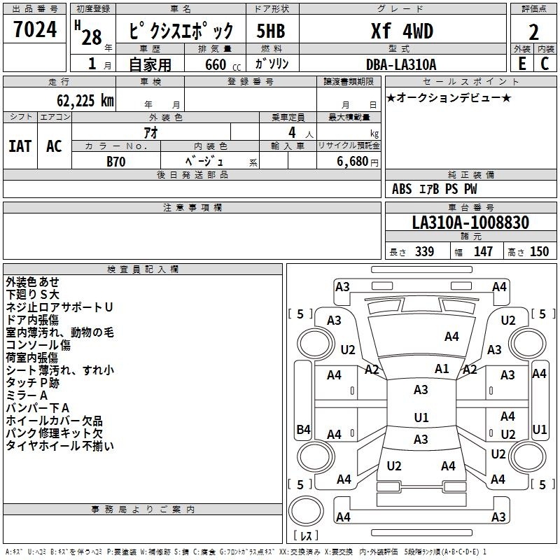 TOYOTA PIXIS EPOCH - лот 7024