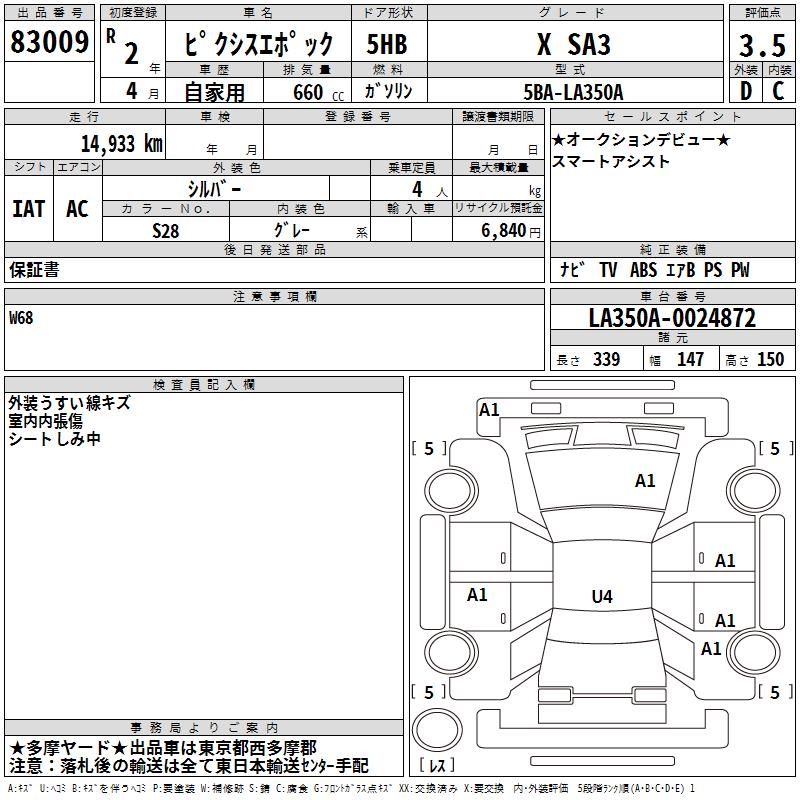 TOYOTA PIXIS EPOCH - лот 83009