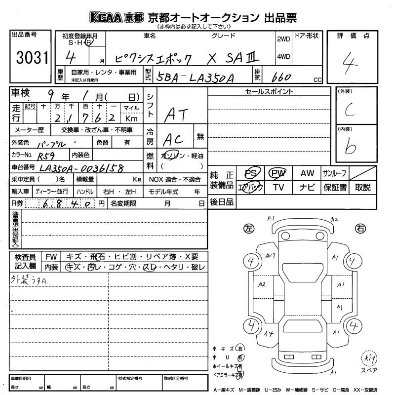 TOYOTA PIXIS EPOCH - лот 3031