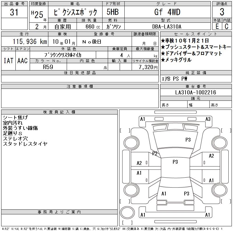 Все аукционы TOYOTA PIXIS EPOCH
