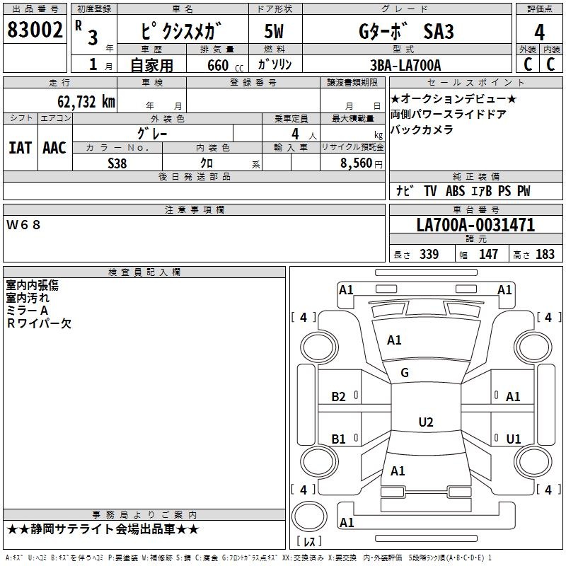 TOYOTA PIXIS MEGA - лот 83002
