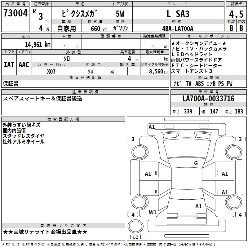 TOYOTA PIXIS MEGA - лот 73004
