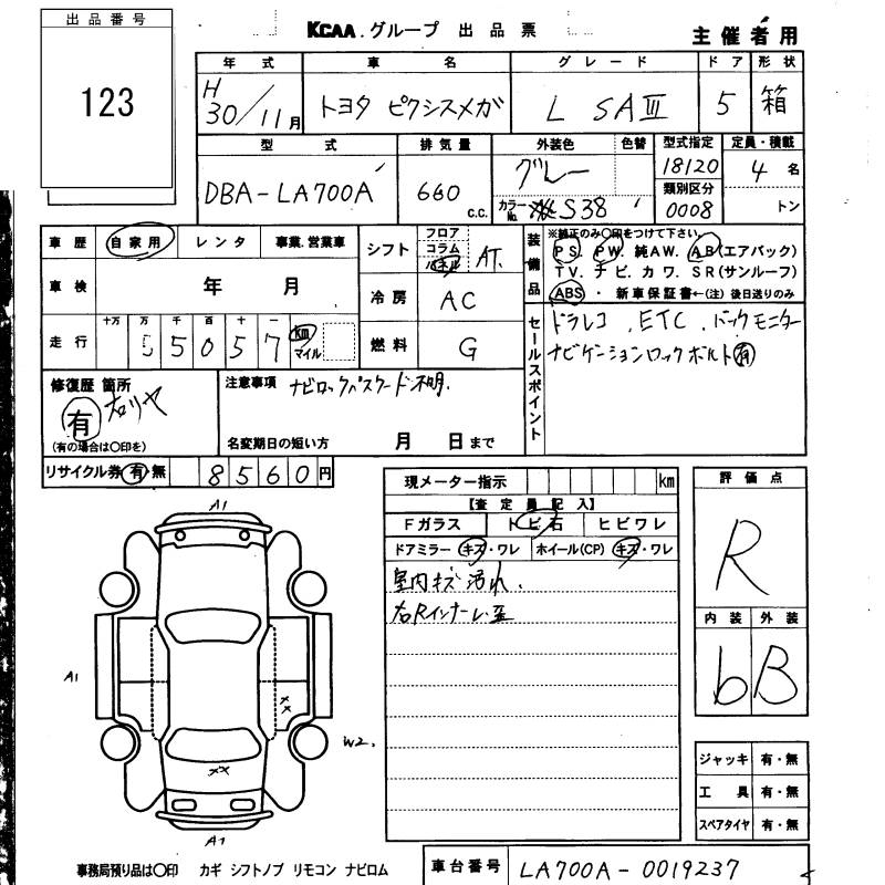 TOYOTA PIXIS MEGA - лот 123