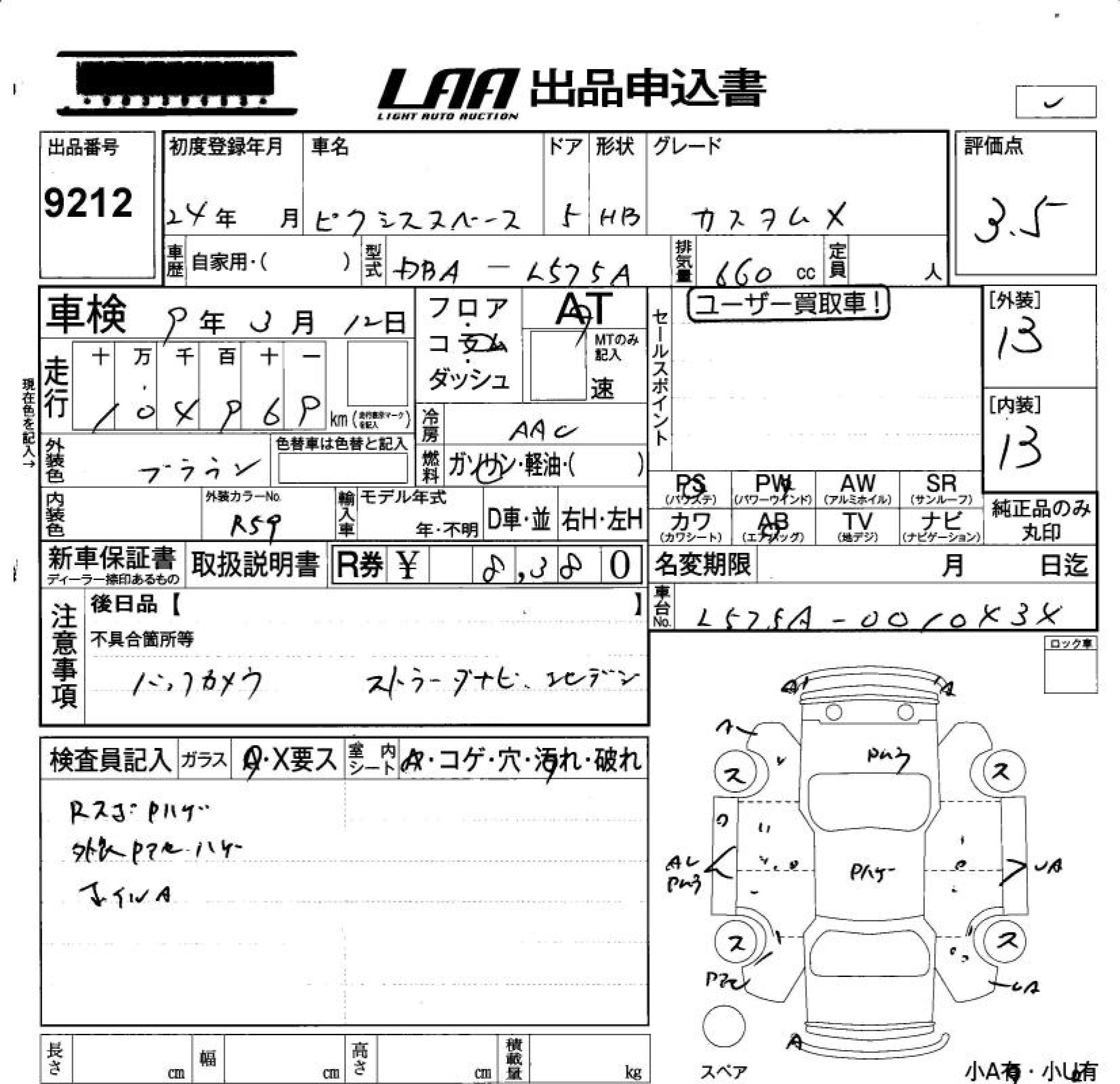 TOYOTA PIXIS SPACE - лот 9212