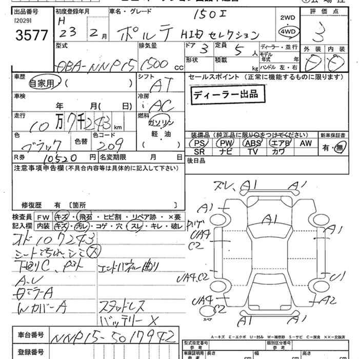 TOYOTA PORTE 4WD 150I HID SELECTION - лот 3577