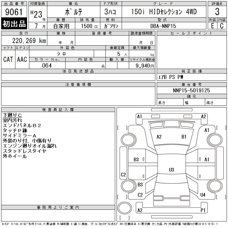 TOYOTA PORTE 150I HID SELECTION 4WD - лот 9061