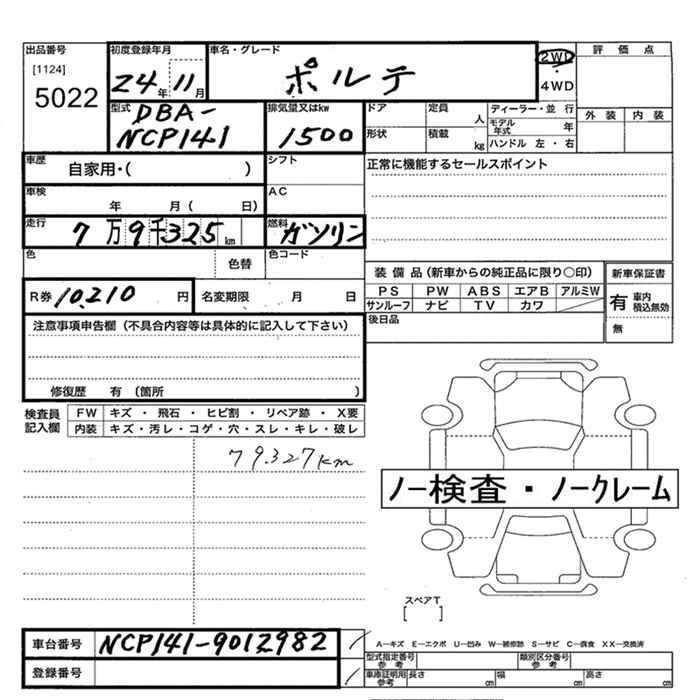 TOYOTA PORTE - лот 5022