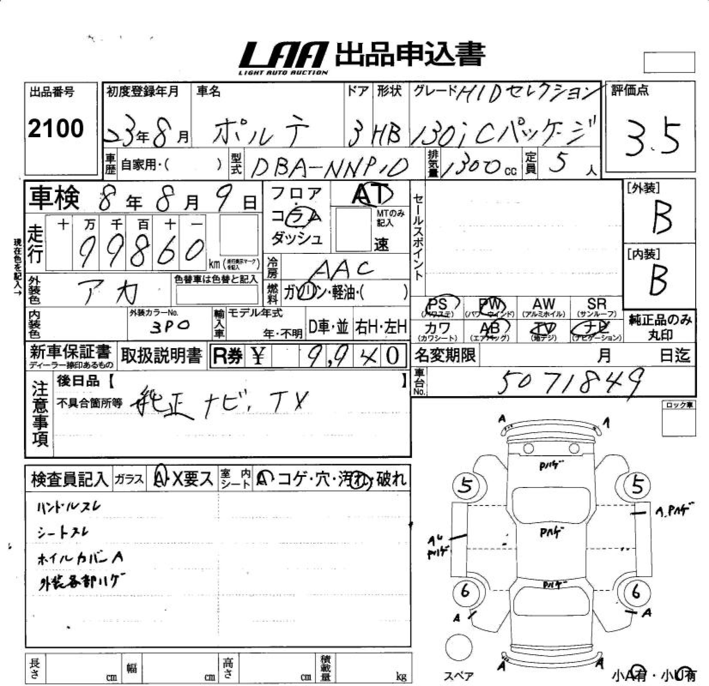 TOYOTA PORTE 130I C PACKAGE HID - лот 2100