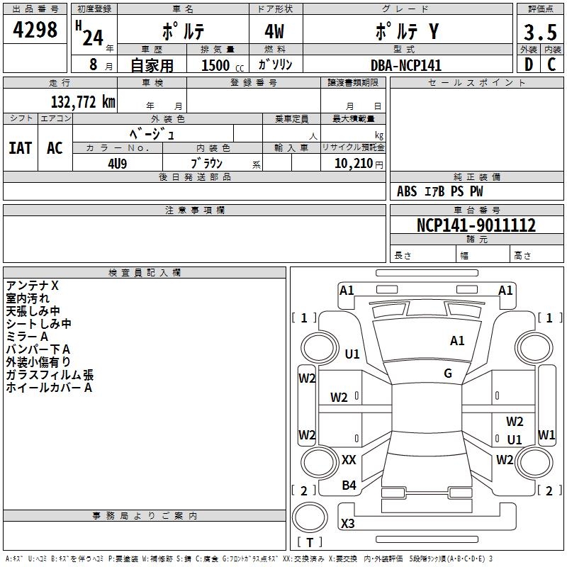 TOYOTA PORTE PORTE Y - лот 4298