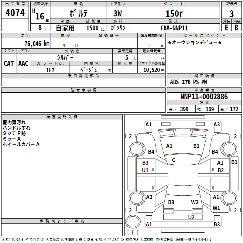 TOYOTA PORTE 150r - лот 4074