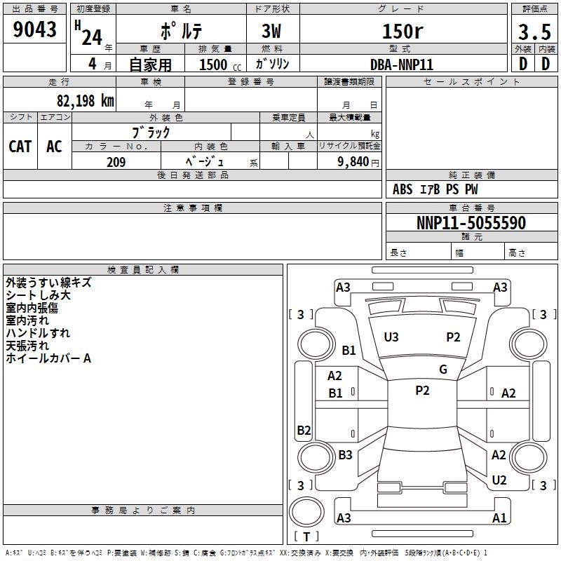 TOYOTA PORTE 150r - лот 9043