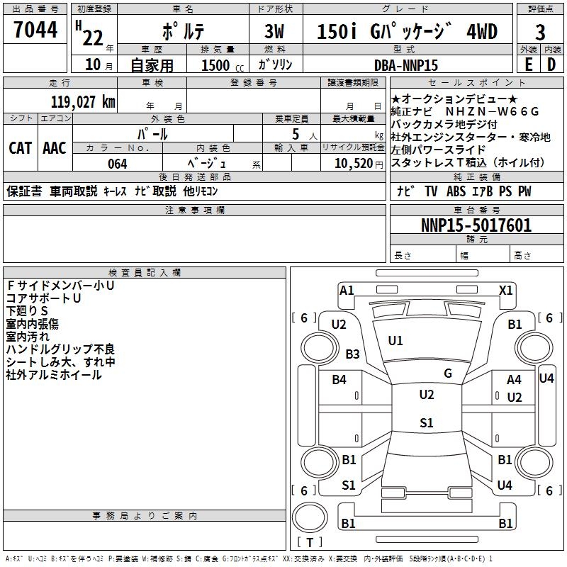 TOYOTA PORTE 150I G PACKAGE 4WD - лот 7044