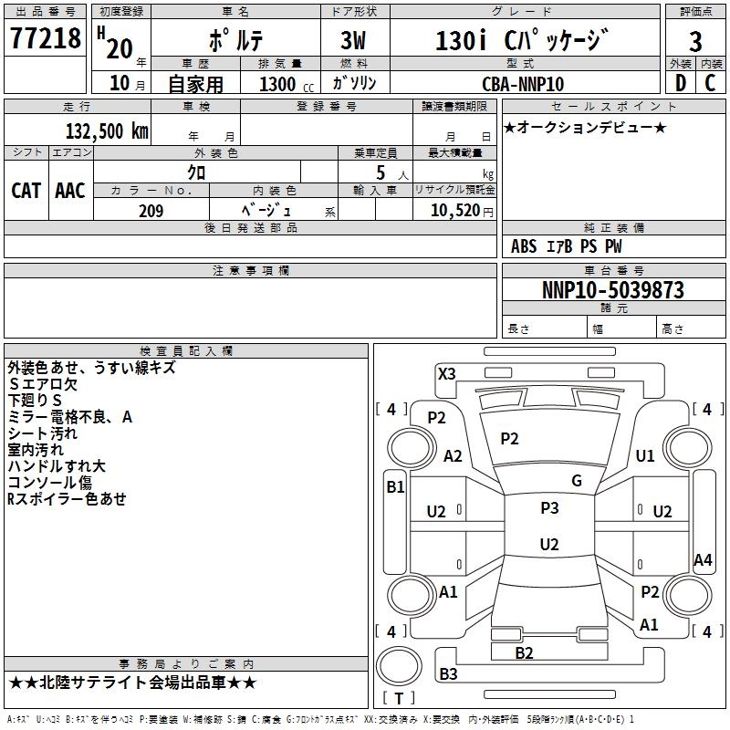 TOYOTA PORTE 130I C PACKAGE - лот 77218