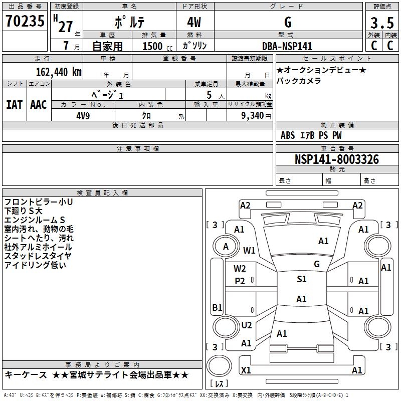 TOYOTA PORTE G - лот 70235