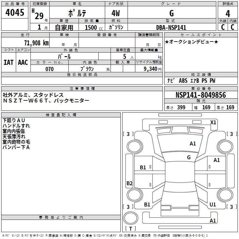TOYOTA PORTE G - лот 4045
