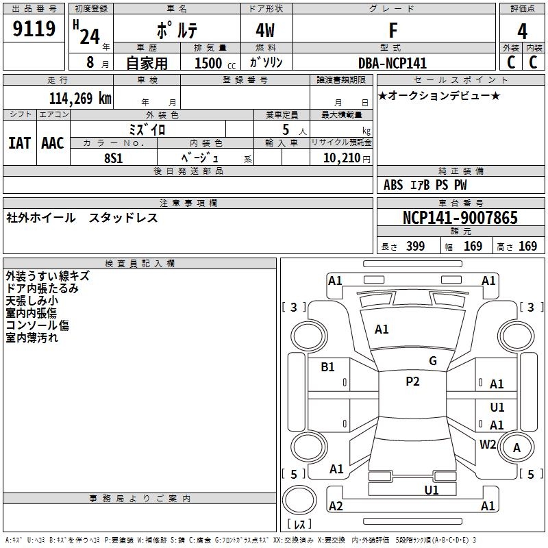 TOYOTA PORTE F - лот 9119