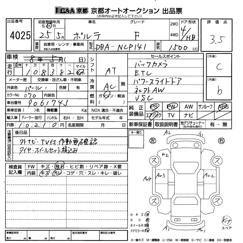 TOYOTA PORTE F - лот 4025