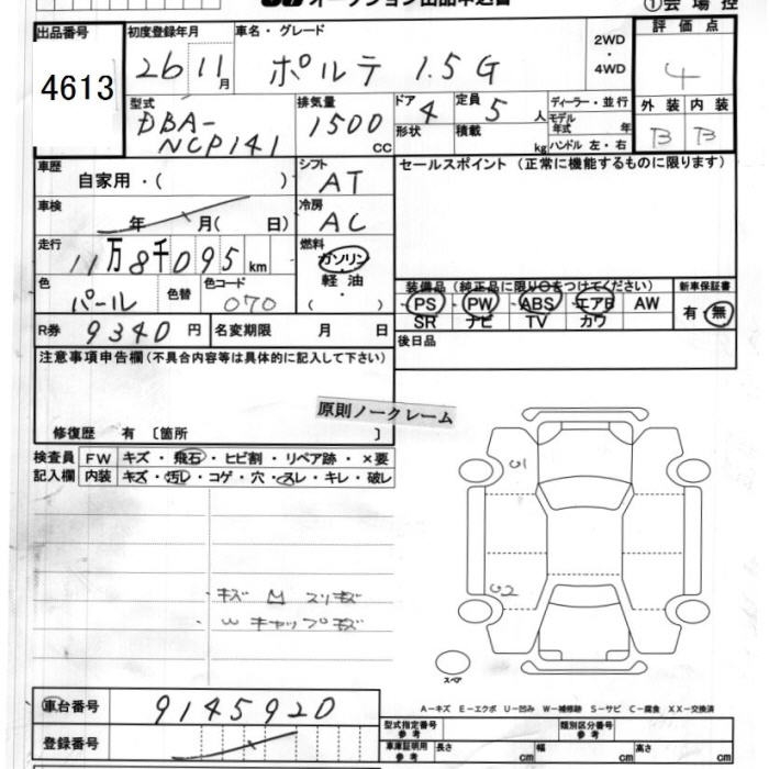 TOYOTA PORTE 1.5G - лот 4613
