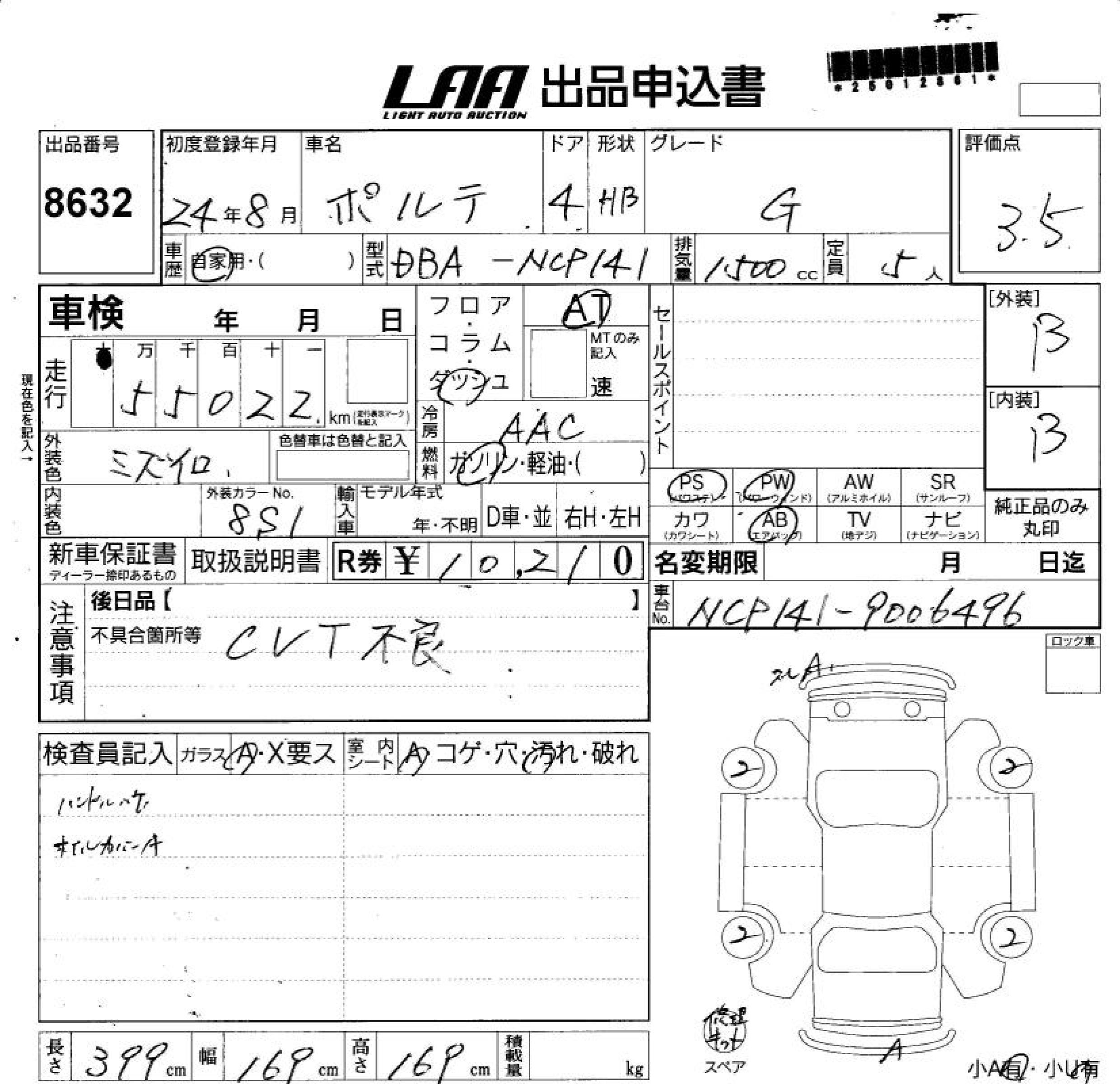 TOYOTA PORTE G - лот 8632