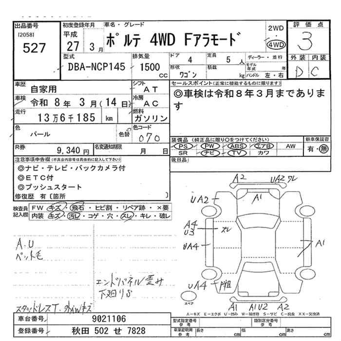 TOYOTA PORTE 4WD FALA MODE - лот 527